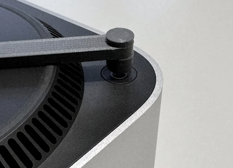 El cuestionado botón se ubica en una esquina inferior del mismo, haciendo más complicado su acceso con el dedo a diferencia de sus generaciones anteriores, en las cuales se ubicaba de forma más accesible en la parte trasera, lo cual ha dado paso para que algunos creativos, estén ofreciendo soluciones alternativas al Mac mini.