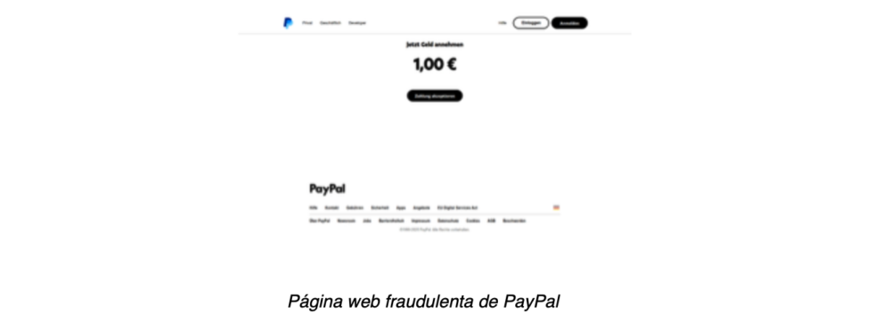 Página web fraudulenta de PayPal