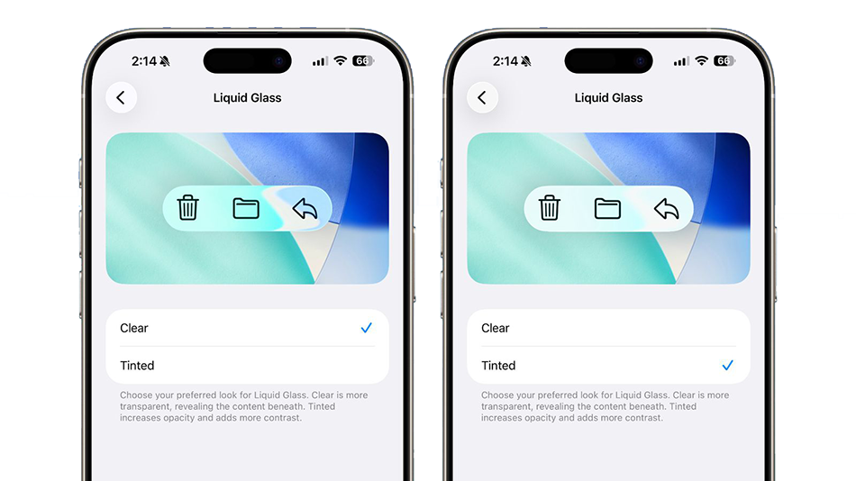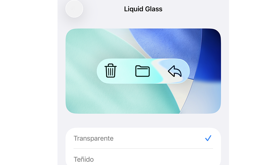 iOS 26.1 permite elegir tu aspecto para Liquid Glass, es decir, más transparente o menos transparente, con la opción «Claro» o «Tintado» más opaca.