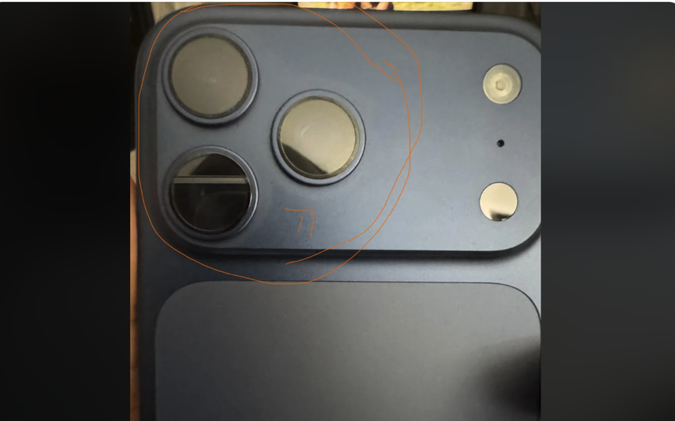 Un informe separado mostró la base de cámara de un iPhone 17 Pro naranja cósmico de cuatro días de antigüedad que parecía más profundo en tono que el marco circundante cuando se veía a la luz del día, a pesar de que el teléfono se mantuvo en la funda transparente de Apple.