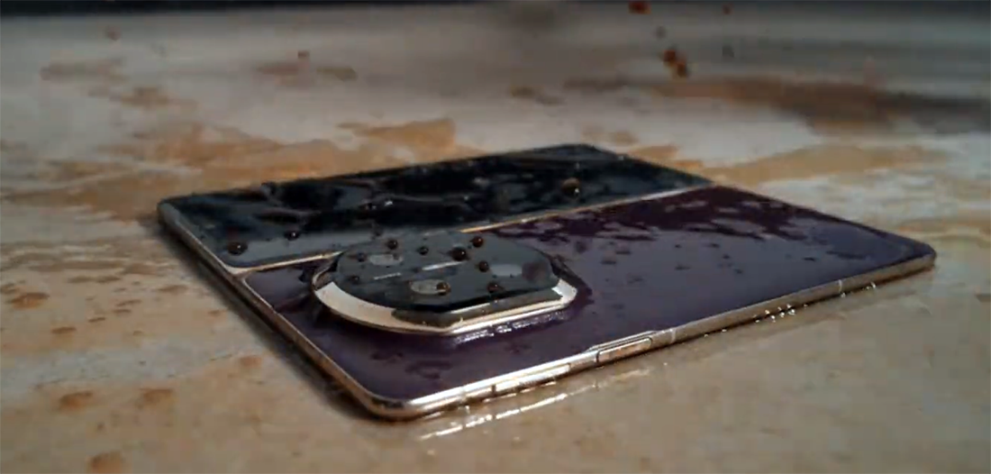 En el video se aprecia que el plegable Mate X7 llegará con nuevos colores, materiales, con textura en su espalda, donde van ubicadas las cámaras, que conforman un anillo hexagonal y no queda ninguna duda, que en esta ocasión, el fabricante apela a mayor resistencia en cuanto a caída de líquidos sobre sus pantallas.