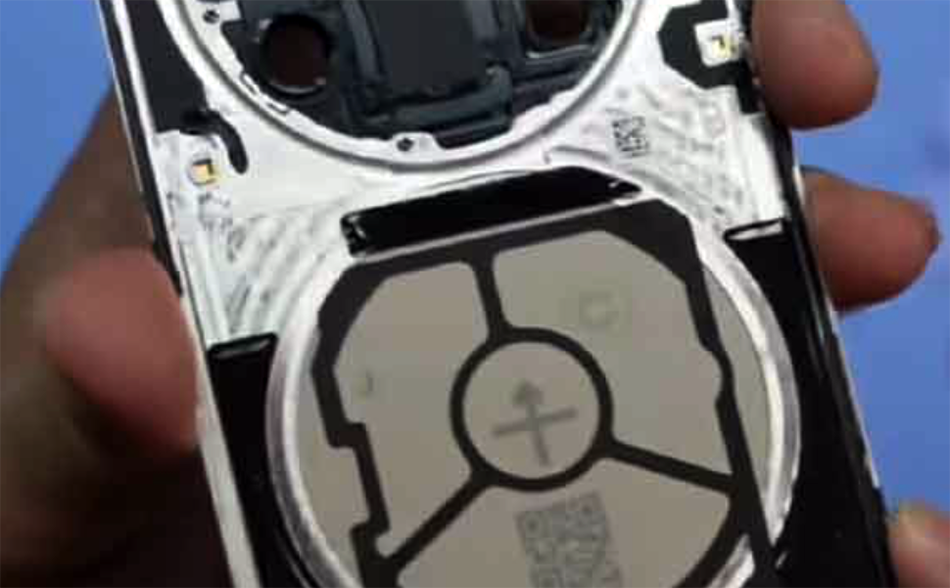 El diseño de doble anillo en la parte posterior podría aparecer como una sola pieza y se ha utilizado dos orificios redondos diferentes para garantizar una mecánica de carga inalámbrica que no existe.