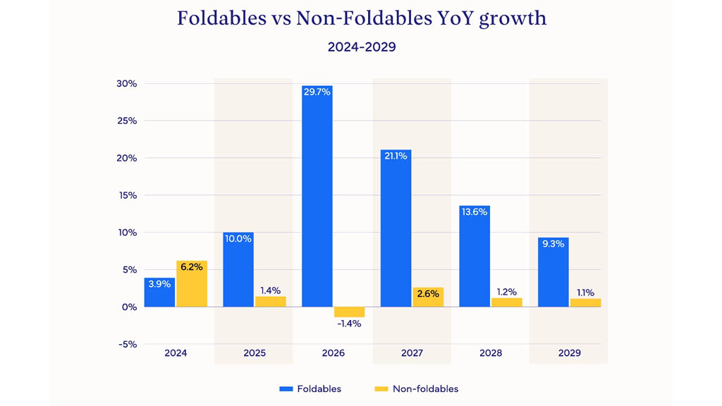 Se espera que el mercado general de teléfonos inteligentes plegables crezca un 30 por ciento en 2026 gracias a la incorporación de Apple al mercado, y también se espera algún crecimiento del lanzamiento del Galaxy Z Trifold de Samsung en enero de 2026.