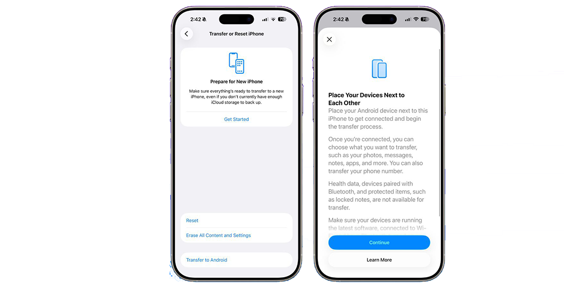 La nueva herramienta de transferencia permite a un usuario de iPhone colocar su dispositivo junto a un dispositivo Android para iniciar un proceso de transferencia.