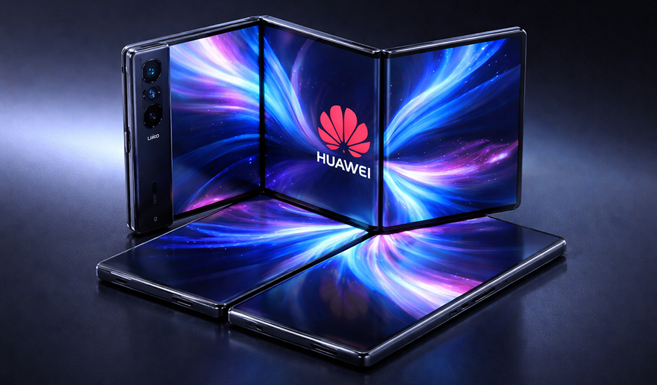 Render Huawei Mate XT Cuadri Fold – Diseño TransMedia Digital